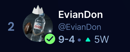 Milo’s record 5th win in a row, the longest streak of anyone this season, took him from 8th- to 2nd-place in the span of those five weeks. His average score over that victorious streak is 134.88pts/week, compared to his 107.93pts/week average prior. By adding another W, he secures his place in the playoffs and avoids the calendar spread.